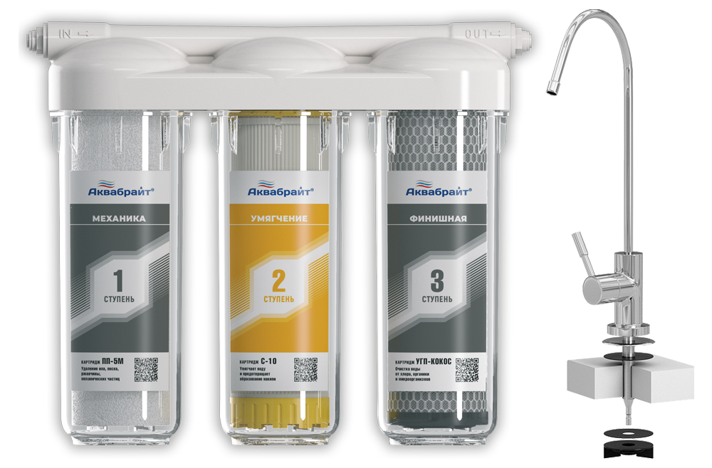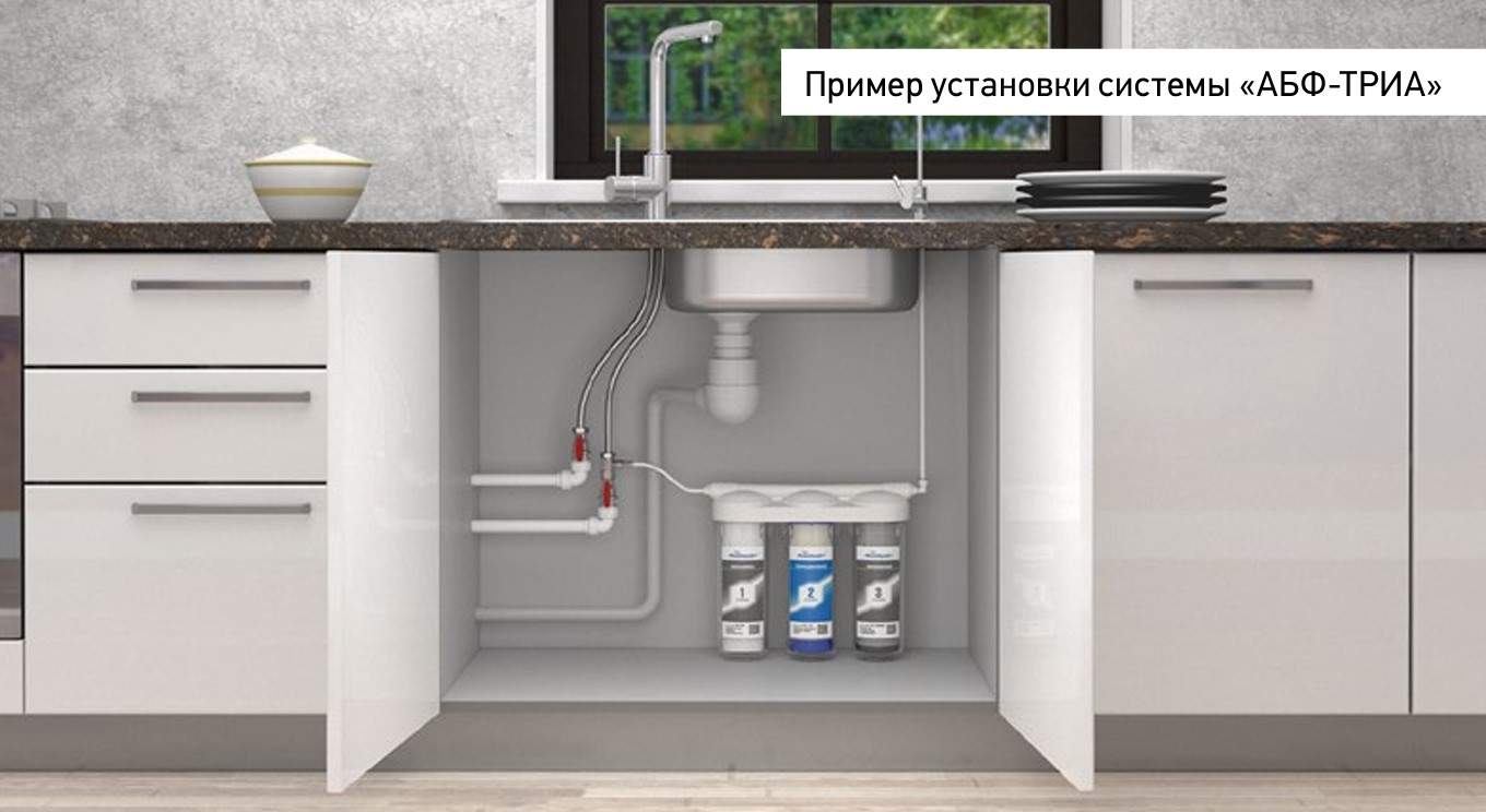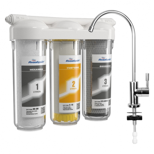 Фильтр под кухонную мойку - 3 ступени очистки АБФ-ТРИА - УМЯГЧЕНИЕ Aquabright