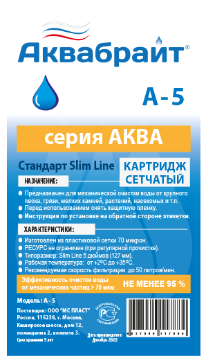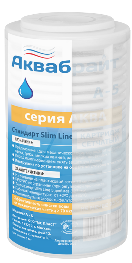 Картридж для мех.очистки воды 5'' (пластик. сетка) Aquabright