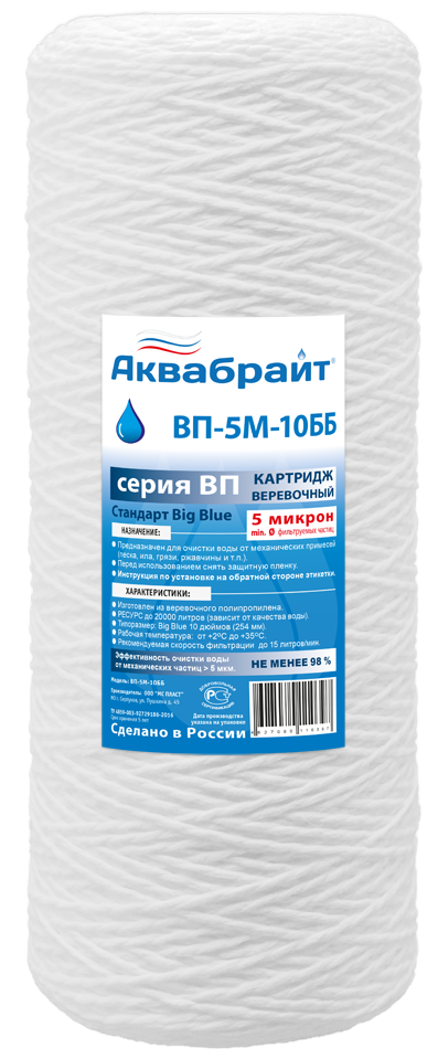 Картридж полипропилен нить Big Blue 10'', 20 mcr для очистки воды, Aquabright