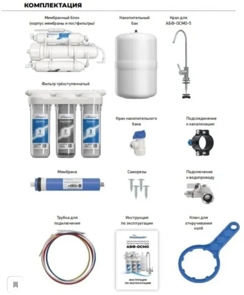 Система обратного осмоса АБФ-ОСМО-6 Aquabright - это надежное и эффективное решение для получения чистой питьевой воды, которое обеспечивает здоровье и благополучие вашей семьи. Она обеспечивает надежную защиту от загрязнений и других вредных веществ в воде, что делает ее идеальным выбором для использования в домах, квартирах, офисах и других местах.