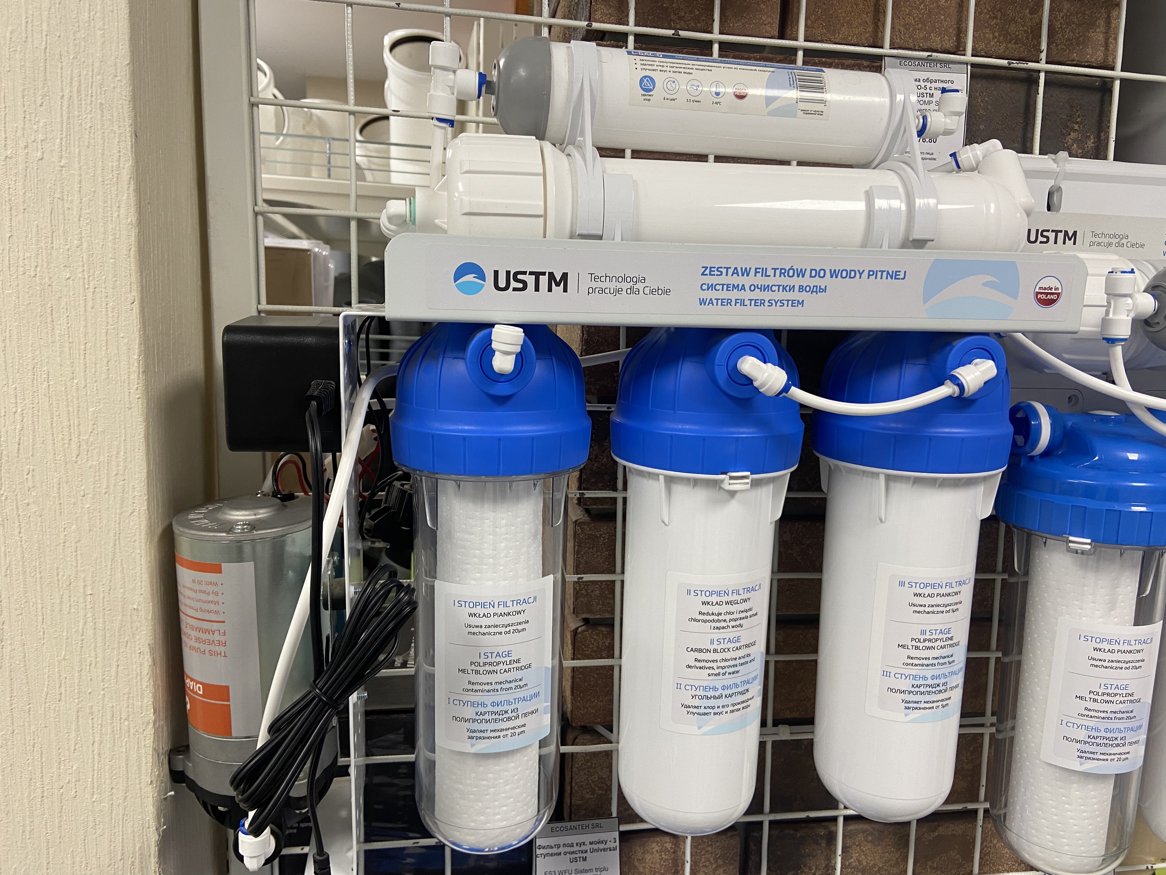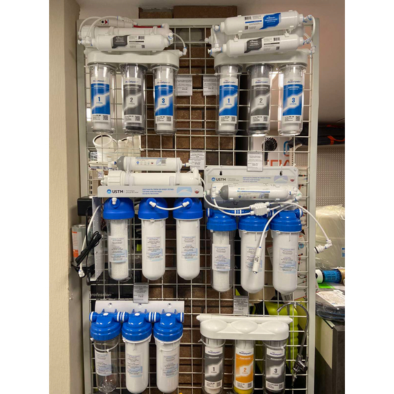 Системы обратного осмоса USTM RO5-EMI. Имеет 5 фильтра предварительной очистки и линейный фильтр, которые обеспечивают высокую эффективность очистки воды. Она также позволяет получать до 280 литров воды в день, что является достаточным количеством для бытового использования.